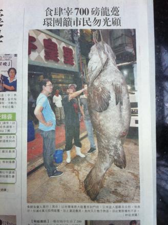 When I was visiting Hong Kong in 2011, I took at stroll in Jordan district of Kowloon. I saw a gigantic fish and it was hung in front of a restaurant. The fish was over 700lb and taller than a man. Next Morning, a photo of that fish also appeared in one of the local newspapers.